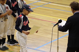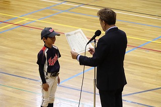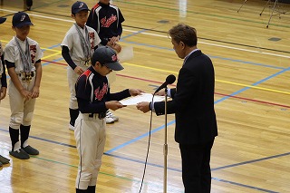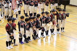 10/26(日) あいにくの雨となりましたが、新堀小学校体育館にて2025年度鹿本少年野球連盟の合同閉会式が行われました。