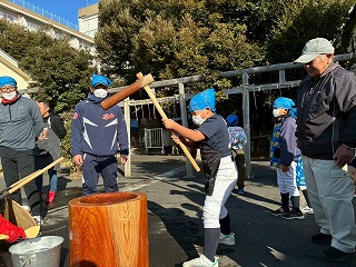 初めて餅をつく選手も多かったようで、慣れない手つきで一生懸命杵を振り下ろしていました!